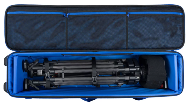 Taška camRade tripodBag Lite nabízí praktický a lehký způsob, jak bezpečně a pohodlně přepravovat stativ a fluidní hlavu. Taška je vyrobena z odolné černé tkaniny Cordura® o hustotě 1000 denierů s jasně modrými detaily a poskytuje vynikající ochranu, přičemž zůstává flexibilní a snadno se s ní manipuluje. Silné polstrování po celé ploše brašny chrání vaše vybavení před nárazy, zatímco vnitřní popruhy a měkké velurové polštářky se suchým zipem udržují stativ během přepravy bezpečně na místě.