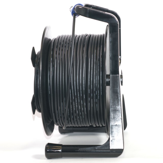 Ohebný kabel CAT6A STP 23AWG o vnějším průměru 8,6 mm se svorkami Telegartner RJ45, navinutý na kabelovém bubnu Schill GT 380.RM. Kabely Ethernet se používají nejen pro počítačové sítě, ale v poslední době také pro digitální audio sítě, síťové kamery, přenosy HDBaseT. Celková délka kabelu je uvedena včetně konektorů.