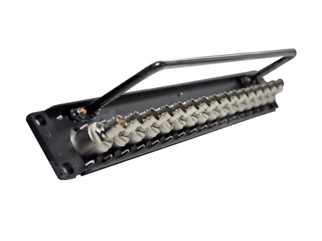 Canare Patch panel BNC 19" 1U - osadený obojstrannými prechodkami BNC (F) / BNC (F) Canare BCJ-JRUDK a káblovým držiakom na zadnej strane. Pomocou dodaných metrických skrutiek do predvŕtaných otvorov s narezaným závitom sa jednoducho manipuluje s konektormia to bez nutnosti demontáže patch panela z racku!