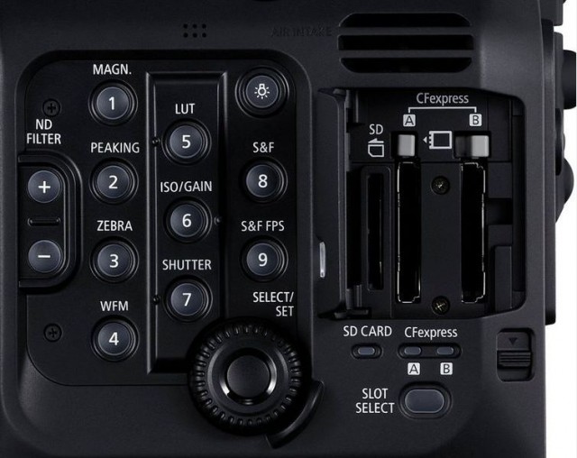 Objímka pre objektív EF je kompatibilná so širokým radom objektívov Canon EF vrátane objektívov EF Cine Prime a voliteľná objímka PL podporuje systém Cooke/i. Okrem toho sú dostupné aj upevňovacie adaptéry B4 (pre objímky EF a PL) pre objektívy B4.