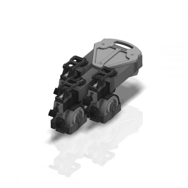 Každou skupinu kol lze umístit do 6 různých poloh pod úhlem 60°, což umožňuje plynulé a přesné posouvání i bez kolejnic.