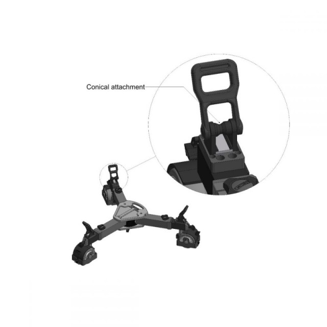 Tento hliníkový výsuvný vozík Dolly je určen pro stativy EFP a studiové stativy (1 a 2 stupně).