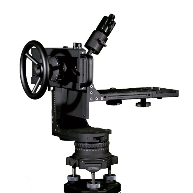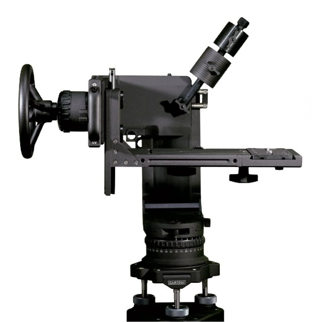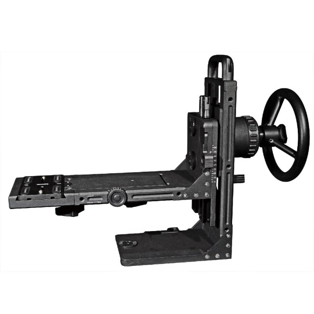 Třetí osa Lambda 50 se montuje namísto stolku kamery Lambda 50 a vytváří 3 nezávislé osy otáčení pro otáčení, naklápění a natáčení.