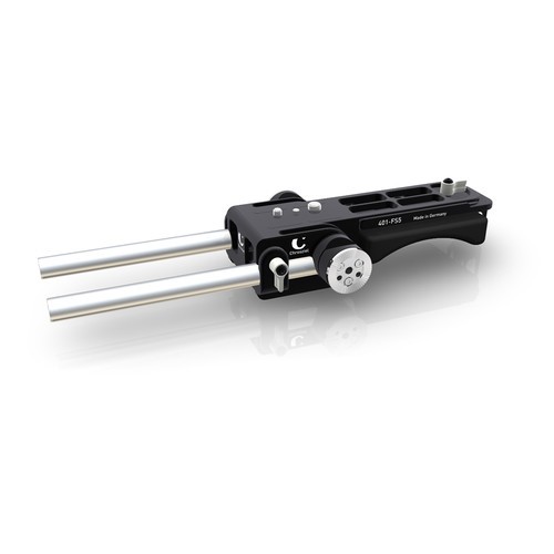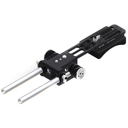 Lehká opěrka také zahrnuje flexibilní adaptér pro stativ s montážními otvory, které umožňují optimální uchycení na většině stativů nebo na volitelnou Chrosziel DigiCine Bridge Plate, a zároveň zajišťují správnou výšku optické osy při použití 19mm studiových sestav.