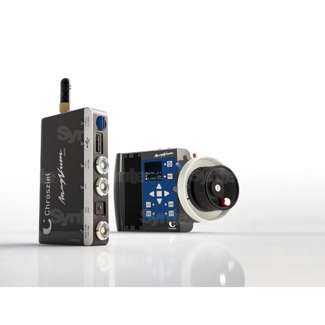 Rozšiřující modul rozhraní MagNum pro jeden další motor a vysílací funkce, jako je přepínání VTR/Talkback, sledování a čtení FIZ, připojuje se přes 12pinový konektor Hirose Lens-Interface-Camera-Connector