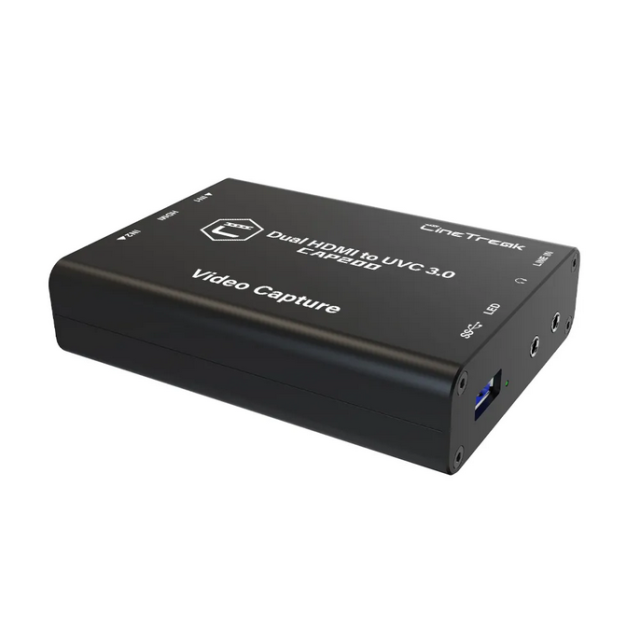 CineTreak CAP20D je profesionální zařízení pro snímání videa s duálním rozhraním HDMI a USB 3.0, které nabízí flexibilní možnosti uspořádání, funkce přepínání v reálném čase, podporu 3D LUT a chroma klíčování. Ideální pro dynamické živé vysílání, výuku a tvorbu obsahu.