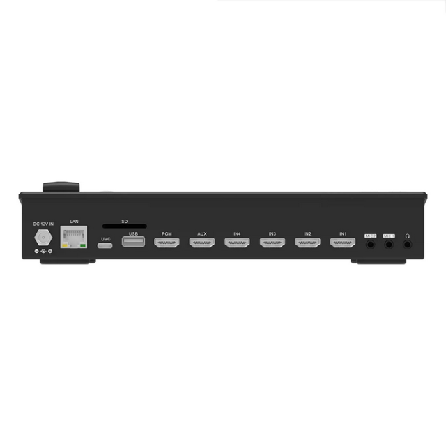 Profesionální nástroje, jako je klíčování chroma a luma, efekty PIP/POP a duální streamování RTMP, zvyšují kreativní flexibilitu. Přepínač také umožňuje místní nahrávání ve formátu H.264 s okamžitým přehráváním a je vybaven funkcí PTZ pro ovládání až čtyř kamer prostřednictvím protokolu VISCA.