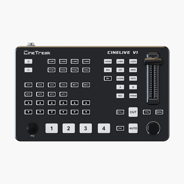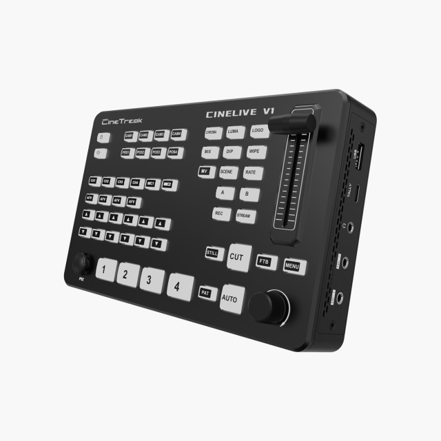 CineTreak Cinelive V1 je všestranný přepínač pro živé vysílání s více kamerami se 4 vstupy HDMI, profesionálním chroma klíčováním, ovládáním PTZ, výstupem UVC a podporou RTMP - ideální pro živou produkci, streamování a vysílání událostí.