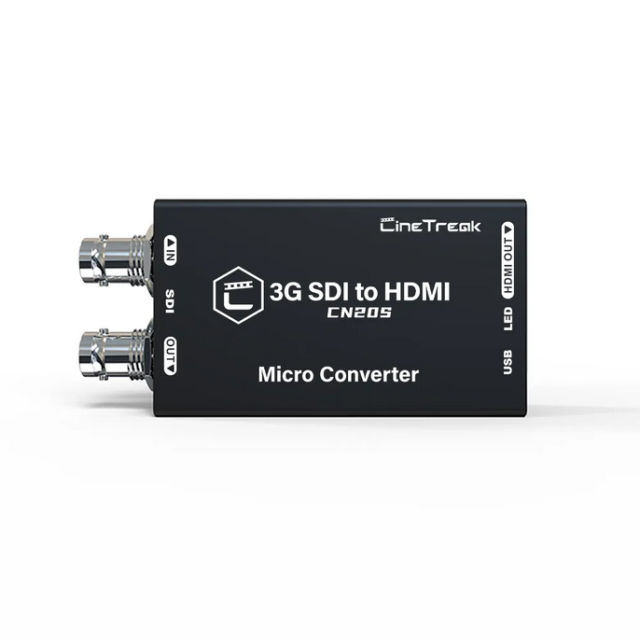 CineTreak CN20S je vysoce výkonný převodník videa SDI/HDMI přizpůsobený pro profesionální produkční prostředí. Podporuje filmové formáty SD, HD, 3G-SDI a ST2048 a poskytuje nekompromisní věrnost videa s 12bitovou barevnou hloubkou pro bohatý a věrný obraz.