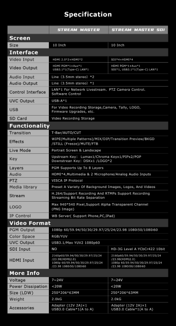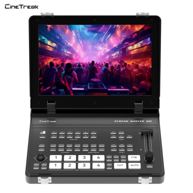 CineTreak Stream Master SDI je profesionální 10″ video mixér s podporou až 4 vstupů HDMI nebo SDI, pokročilým ovládáním PTZ, duálním streamováním RTMP a hliníkovým tělem s výklopnou obrazovkou - ideální pro špičkové hybridní živé produkce.