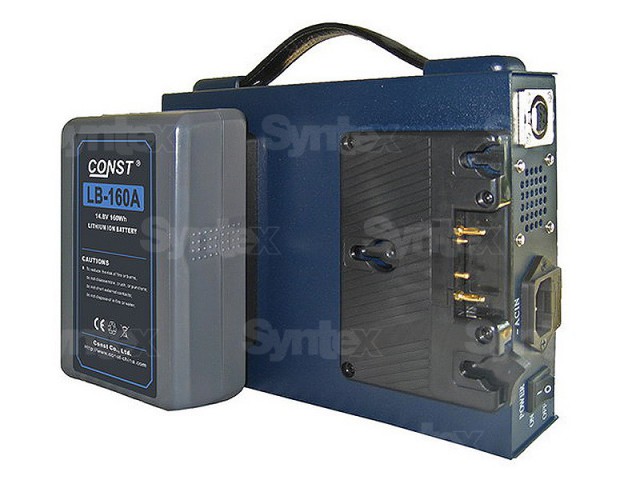 Stolní dvoukanálová nabíječka pro dvě Gold-mount baterie umožňuje nabíjet dvě baterky současně nebo lze použít jako zdroj napájení například pro kameru.