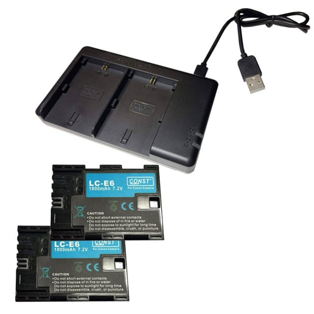 2ks CONST LC-E6 (LP-E6), 7,2V 1800mAh baterie a dvoukanálová nabíječka CONST C-2E6