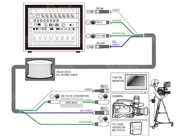 Datavideo CB-23H je 50 m dlouhý kabel "vše v jednom" pro živou produkci. 1 x 4-pinový