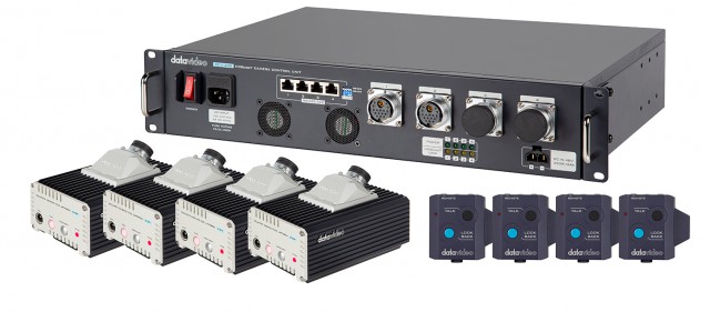 Datavideo CCU-200 je inovativní řešení pro dálkové ovládání/napájení studiových kamer po rozhraní HDBaseT. Sada obsahuje centrální CCU jednotku, 4x AD-3 breakout box pro V-Mount a 4x RMC-240 lookback modul pro snadné přepínání náhledu na monitoru. Technologie dovoluje přenášet Full HD 1080p signál s kamer po kabelu CAT6 na vzdálenost až 100 m (prostřednictvím volitelného kabelu CB-66; kabel CB-65 je dlouhý 50 m), navíc dovoluje kamery i napájet. Samozřejmostí je ovládání kamer (clona, zaostření, zisk apod.), signalizace a interkom mezi kamerami a režií (interkom lze realizovat prostřednictvím volitelné jednotky Datavideo ITC-300). CCU-200 podporuje také ovládání kamer po rozhraní RS-232 a RS-422, alternativně lze využít volitelný modul Datavideo MCU-400 pro ovládání až čtveřice kamer Datavideo BC-100.