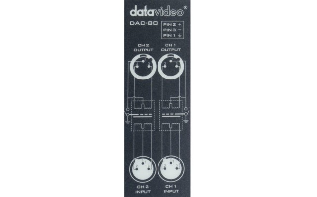 Zařízení Datavideo DAC-80 odstraňuje brum z audio linek vzniklý zemními smyčkami – stačí jej připojit pomocí vstupních a výstupních kabelů s XLR konektory. DAC-80 způsobuje minimální útlum a distorzi signálu, navíc je zcela pasivní a ke své činnosti nevyžaduje napájení. Produkt DAC-80 je kompatibilní s volitelným rackem RMK-2 a s volitelným držákem MB-5 se suchým zipem.