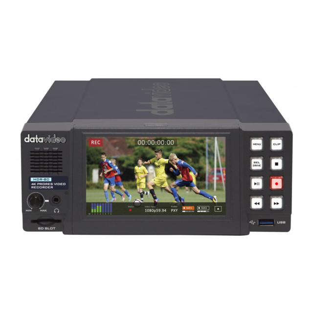Rekordér Datavideo HDR-80 dokáže nahrávať až štyri 3G SDI video signály alebo jeden 4K/UHD signál cez HDMI alebo 12G SDI. Je vybavený streo XLR vstupmi aj výstupmi, Gen-lock aj Time code vstupmi a výstupmi, je ovládateľný cez DVIP / GPI / RS-2332, záznam sa ukladá na 2 SSD disky a zariadenie môže slúžiť aj ako prehrávač.