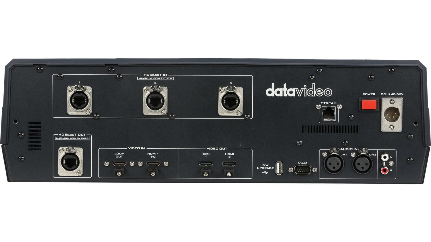 Konstrukce modelu HS-1650T vám ušetří čas, peníze a místo na stole díky vestavěnému rozhraní pro ovládání až 3 kamer Datavideo PTZ.