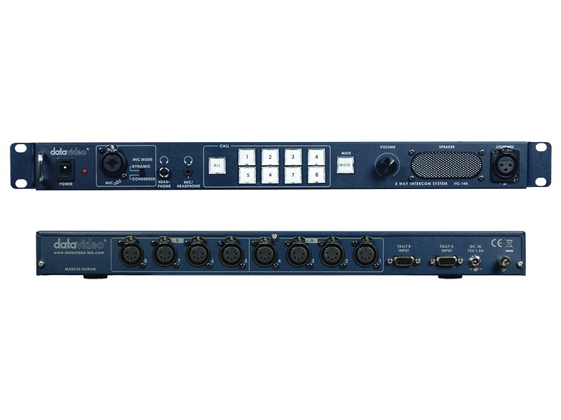 V produkčnom štúdiu je komunikácia medzi režisérom, kameramanmi a kontrolnou miestnosťou veľmi dôležitá. Datavideo ITC-100 Intercom System je 8-kanálový komunikačný systém s 8 univerzálnymi tally svetlami (v základnom sete 4, možnosť rozšíriť na 8). Režisér si môže vybrať individuálny kanál alebo komunikáciu so všetkými kanálmi súčasne. Vysoká kvalita vyhotovenia a plne duplexná komunikácia.