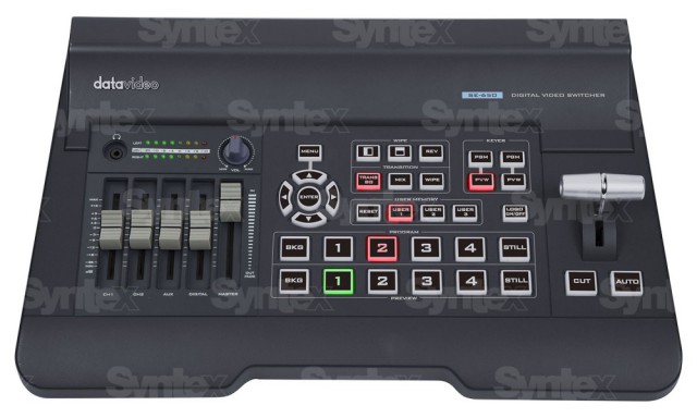 Datavideo SE-650 je miniaturní, profesionální HD režie s vynikajícím poměrem cena/výkon a s dvojicí HD-SDI a stejným počtem HDMI vstupů, dvěma HDMI výstupy a jedním HD-SDI výstupem. Zobrazený monitor není součástí dodávky.