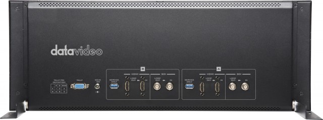 Dvojice 10,1” HD displejů v jednom 4 RU těle, Datavideo TLM-102, slouží k náhledu videa i ke kontrole kvality signálu pomocí integrovaných funkcí vektorskopu a monitoru vlnového průběhu. Každý z monitorů je osazen jedním SDI a jedním HDMI vstupem a stejnou konfigurací výstupů.