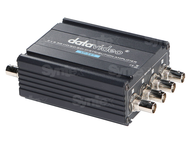 Datavideo VP-597 je SDI distributor s 2 vstupmi, 6 výstupmi a s A/B prepínačom vstupu. Podporuje 3G/HD/SD-SDI video signál s embedovaným audiom a re-clock pre dlhšiu vzdialenosť.