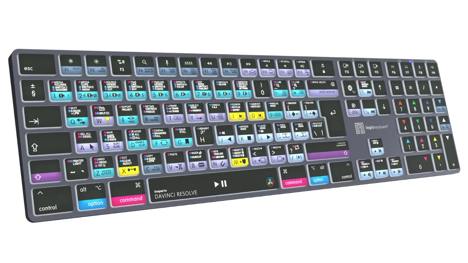 Navrženo pro DaVinci Resolve – vyrobeno pro MacTato klávesnice Logickeyboard je vaší první volbou při editaci v DaVinci Resolve. Zkratkové příkazy označené na klávesách a jejich barevně odlišené definice z vás během chvilky udělají mistra ovládání DaVinci Resolve. Klávesnice Logickeyboard je ideální pro postprodukční studia, profesionální editační studia a všechny ostatní, kteří pilně pracují s DaVinci Resolve.