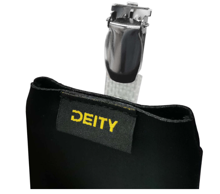 Deity THEOS Pouch Black je měkké, diskrétní pouzdro určené pro pohodlné a bezpečné připevnění vysílače THEOS DBTX během natáčení filmů, divadelních představení a živých produkcí.