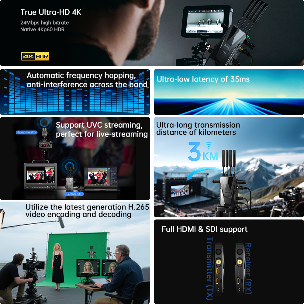 Skutečné rozlišení Ultra-HD 4K Automatické přeskakování frekvencí, odrušení rušení v celém pásmu |