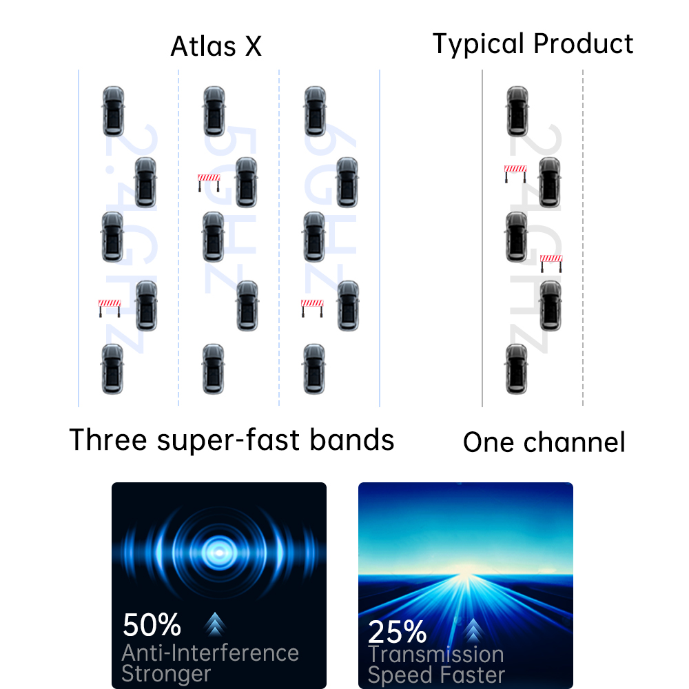 Stabilní pokrytí na dlouhé vzdálenosti, dosah až několik kilometrů Díky třípásmovému přenosu dosahuje Atlas X přenosové vzdálenosti až 3 km v otevřeném prostředí bez překážek. Zvládá velkoplošné mobilní natáčení s vysokou propustností stěn a splňuje požadavky na monitorování na place v jakémkoli složitém prostředí.
