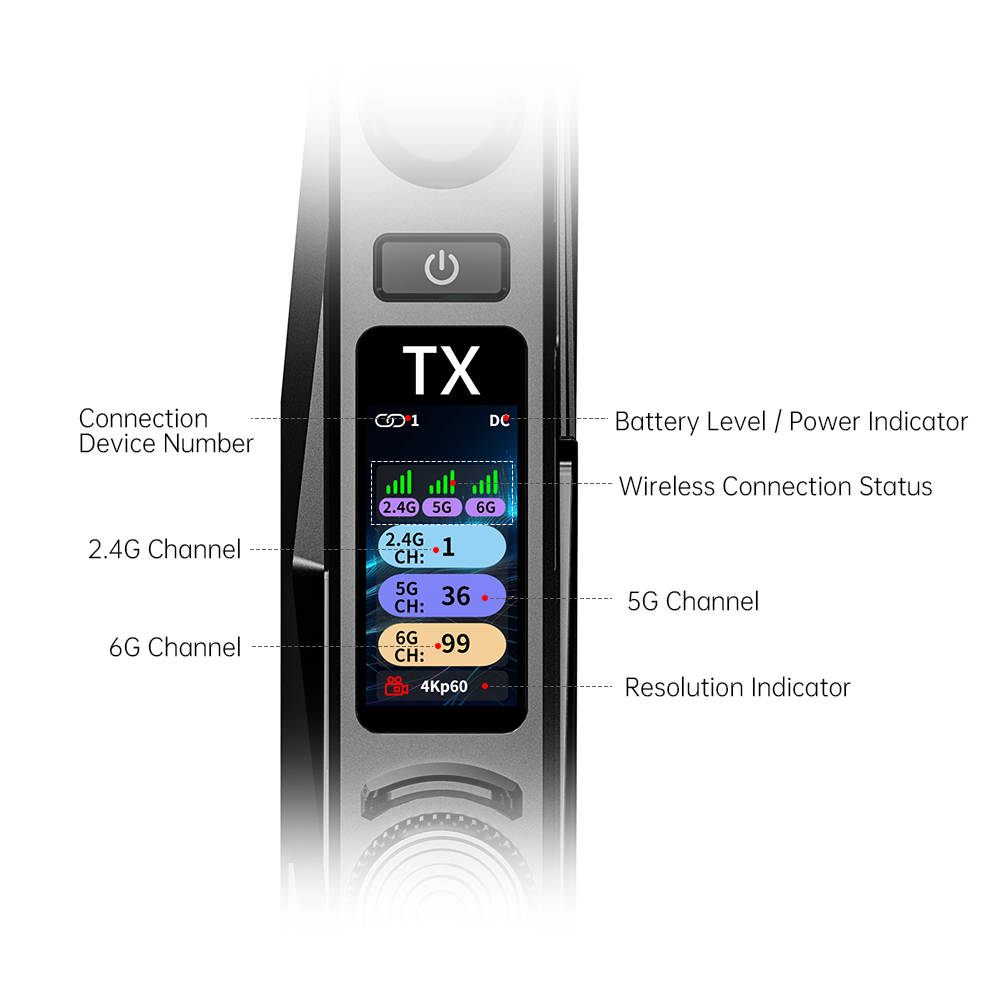 | 1,05palcový plně barevný LCD displej Zobrazuje stav signálu, kanálové pásmo a úroveň baterie v reálném čase, všechna data jsou vizualizována na obrazovce pro rychlejší nastavení. |