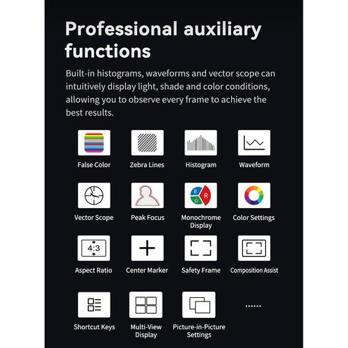 Monitor D17-HDR, navržený pro univerzální produkční pracovní postupy, podporuje vstupy HDMI 2.0, 3G-SDI a USB s videem až do rozlišení 4K60 a poskytuje výstupy HDMI a SDI pro průchozí nebo externí distribuci. Pokročilé režimy multiview umožňují monitorování na dvou, třech a čtyřech obrazovkách spolu s funkcí obraz v obraze. Profesionální nástroje, jako jsou vlnová forma, histogram, falešné barvy, zaostření a zebra, pomáhají s přesností expozice a zaostření. Monitor podporuje horizontální i vertikální režimy zobrazení, takže je vhodný pro tradiční formáty vysílání a sociálních médií. Desview D17-HDR je umístěn v odolném hliníkovém ochranném pouzdře a nabízí flexibilní možnosti napájení, včetně baterie V-mount, AC a 4pinového XLR, a je spolehlivým řešením pro monitorování na place a ve studiu.