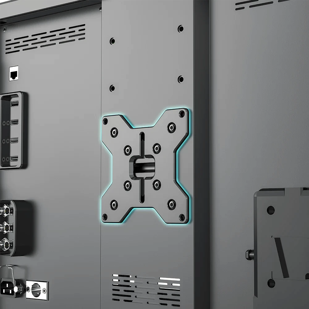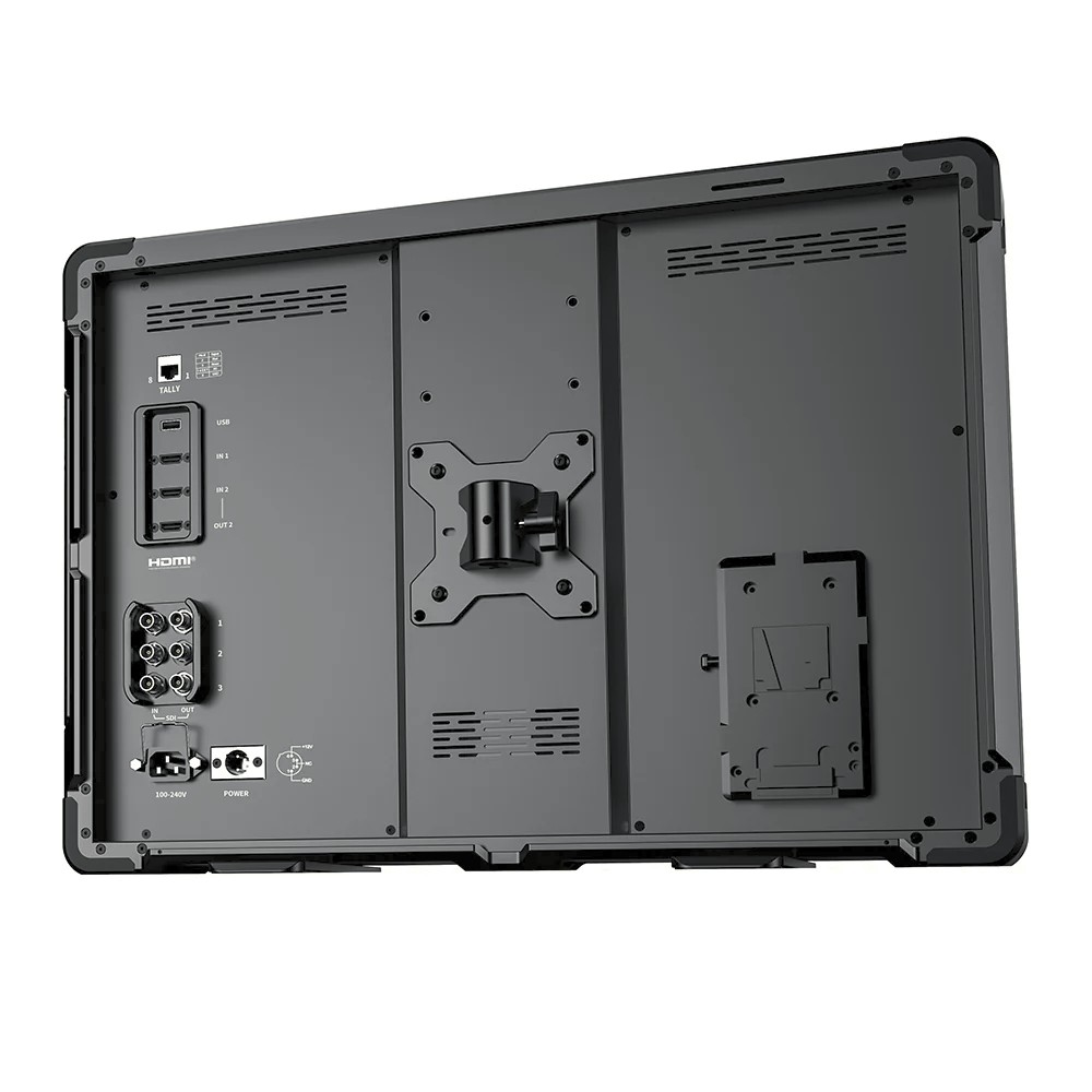 D21 Pro je navržen pro náročné prostředí a disponuje tlakově odolným kompozitním krytem, který vydrží zatížení až 80 kg, a je vyztužen vojenskými protinárazovými rohovými chrániči testovanými na pád z výšky 1,5 metru. Více montážních bodů 1/4"-20 a 3/8" a kompatibilita s držáky VESA umožňují hladkou integraci se světelnými stojany, vozíky a studiovými zařízeními. Flexibilitu napájení zajišťuje napájení ze sítě, vstup XLR DC nebo podpora baterií V-mount, díky čemuž se hodí pro studio, venkovní nebo mobilní natáčení. Tříbarevná kontrolka (červená/zelená/modrá) na přední straně dále zvyšuje jeho vhodnost pro živou produkci a vysílací prostředí.
