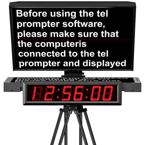 Nastavitelný držák kamery je kompatibilní s digitálními zrcadlovkami, bezzrcadlovkami, videokamerami a filmovými kamerami, zatímco přiložená stahovací clona snižuje odlesky a zabraňuje nežádoucím odrazům. Šifrovaný teleprompterový software podporuje formáty souborů TXT a Word a umožňuje přesné ovládání velikosti textu, rychlosti posouvání a orientace.