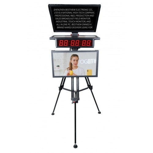 Teleprompter Desview DT22-P s dvojitým displejem je určen pro profesionální televizní a video produkci a živé vysílání. Díky dvojitým 22palcovým monitorům s vysokým rozlišením a tvrzenému sklu s rozdělením paprsku 70/30 zajišťuje ostré a jasné zobrazení textu a zároveň umožňuje přirozený oční kontakt s diváky. Systém podporuje více formátů souborů, včetně Word, TXT a PDF, a umožňuje přizpůsobení písma a pozadí pro různé potřeby vysílání.