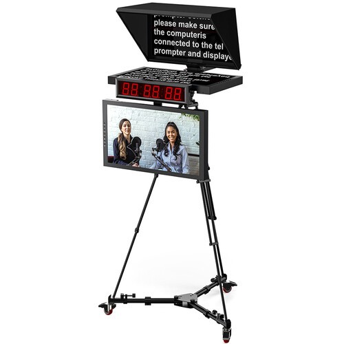Teleprompter obsahuje profesionální software pro promítání textu s šifrovacím klíčem, který zajišťuje bezpečný a stabilní provoz v systémech Windows. Bluetooth bezdrátové dálkové ovládání a kabelový nožní pedál nabízejí několik možností ovládání, které umožňují moderátorům nebo operátorům plynule nastavovat rychlost posouvání a přehrávání. Celý systém je navržen s ohledem na mobilitu a je zabalen v odolném hliníkovém kufru na kolečkách, což usnadňuje a zabezpečuje přepravu mezi studii a lokacemi.