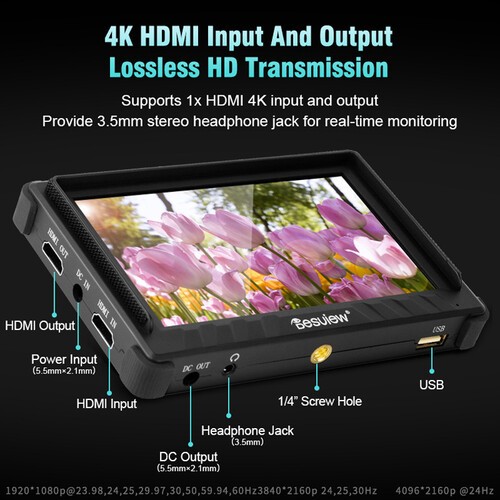 Desview P5II je kompaktní 5,5palcový monitor na kameru s rozlišením Full HD 1920 × 1080, jasem 800 cd/m², podporou HDR a pokročilými monitorovacími nástroji, včetně falešných barev, zaostření a vlnové formy. Podporuje vstup HDMI až do DCI 4K24, vlastní 3D LUT a nabízí flexibilní možnosti napájení pomocí baterie řady L nebo vstupu DC.