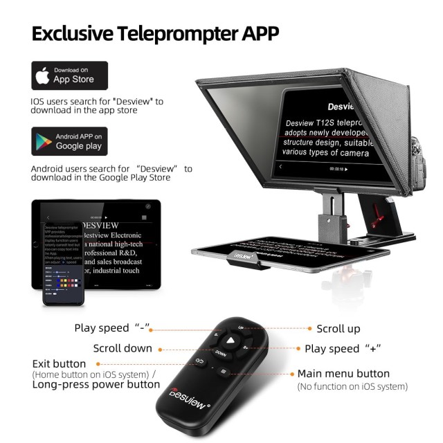 Profesionální teleprompter Desview T12S s katalogovým číslem des-T12S vám umožní plynulé čtení scénáře při natáčení videí nebo prezentacích. Tento výkonný teleprompter je ideální pro vloggery, tvůrce obsahu, profesionální moderátory i pro firemní účely. Díky snadnému použití a vysoké spolehlivosti vám Desview T12S pomůže dosáhnout profesionálních výsledků a zvýší vaši jistotu před kamerou. Objevte nový standard pro čtení textu při jakémkoli natáčení.