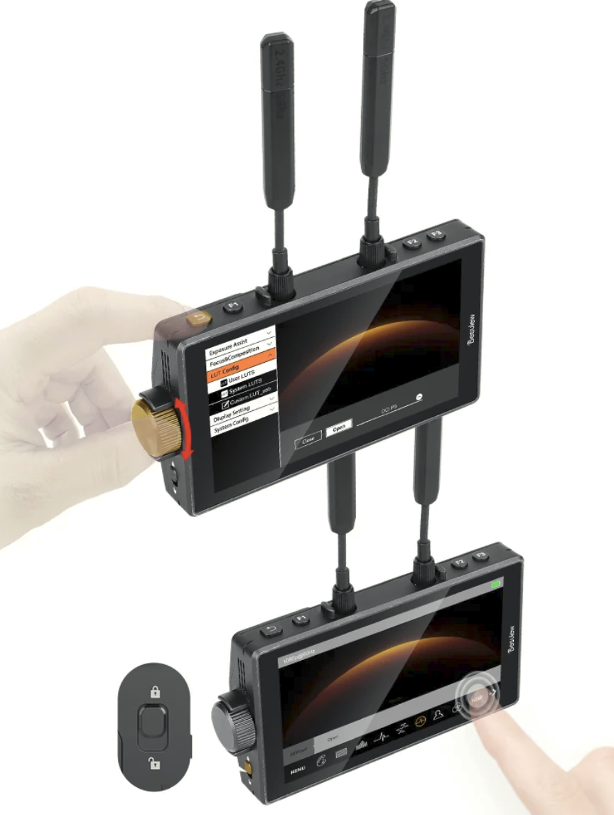 Thundermon RX (plastové pouzdro) je vybaven vestavěným 5,5palcovým Full HD monitorem s panelem 8+2 FRC, který poskytuje špičkový jas až 1200 nitů a pokrytí barevného gamutu DCI-P3 89,9 %. To zajišťuje vynikající viditelnost venku a přesné zobrazení barev. Profesionální monitorovací nástroje, jako jsou waveform, vectorscope, false color, focus assist, HDR monitoring a podpora vlastních 3D LUT, umožňují přesné vyhodnocení expozice a barev na place.