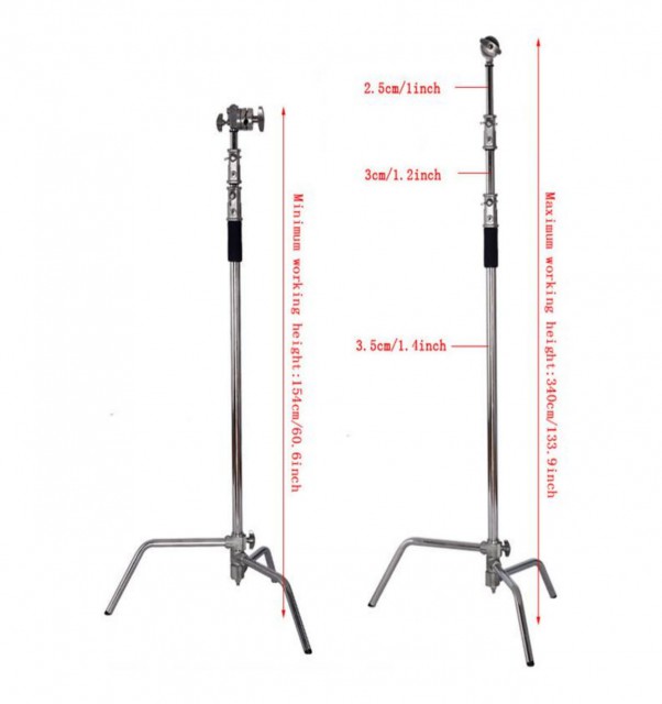 Hliníkový stativ pro světla, váha 7,5 kg, výška 154-340 cm, max. nosnost 20 kg.