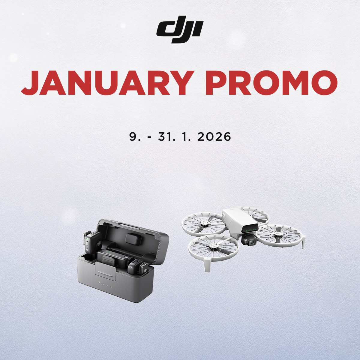 Od 9. do 31. ledna 2026 pro vás máme postupně přichystané slevy na 4 skupiny produktů DJI. Díky této akci můžete pořídit nejen špičkové drony, stabilizátory na mobil , ale také akční kamery nebo mikrofony DJI se slevou až 38 %!