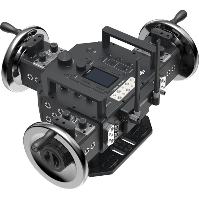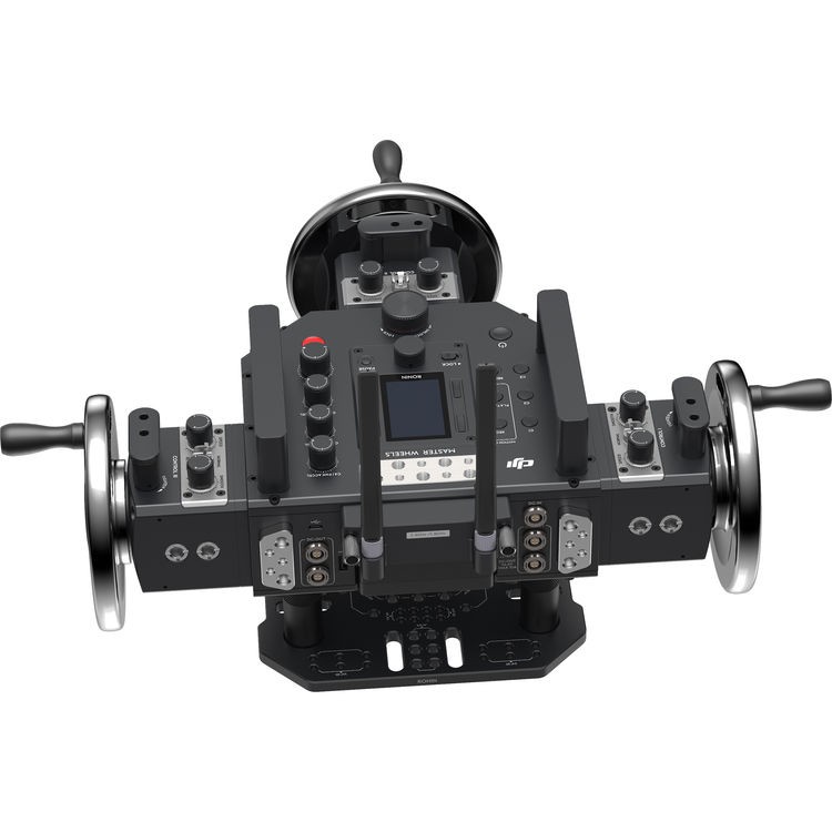 DJI Master Wheels 3-Axis (RH) je profesionální bezdrátový ovladač gimbalu, který poskytuje přesné ovládání s nízkou latencí pro každou osu gimbalu. Je kompatibilní s Ronin 2, Ronin-S a vybranými gimbaly třetích stran přes SBUS, má tři vysoce přesná ovládací kolečka, přizpůsobitelné ovladače rychlosti a tlumení a podporuje bezdrátový provoz na dlouhé vzdálenosti až 1,8 míle pro filmovou, televizní a video produkci.