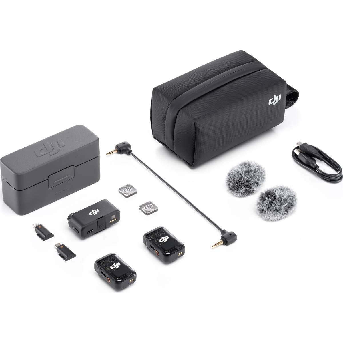 V balení (sada DJI Mic 2 - 2 TX + 1 RX + Charging Case):
