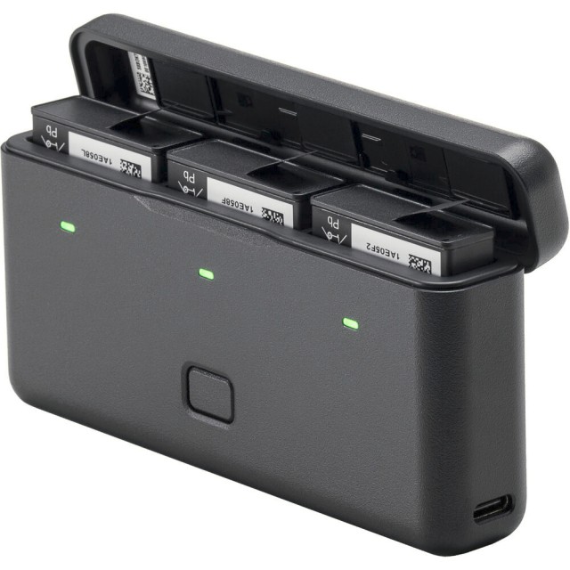 Multifunkční pouzdro na baterie DJI Osmo Action 3 je univerzální příslušenství určené k uspořádání, ochraně a nabíjení baterií kamery Osmo Action. Pouzdro pojme až tři baterie Osmo Action 5, 4 nebo 3 a umožňuje jejich současné rychlé nabíjení přes port USB-C (USB zdroj napájení není součástí balení).