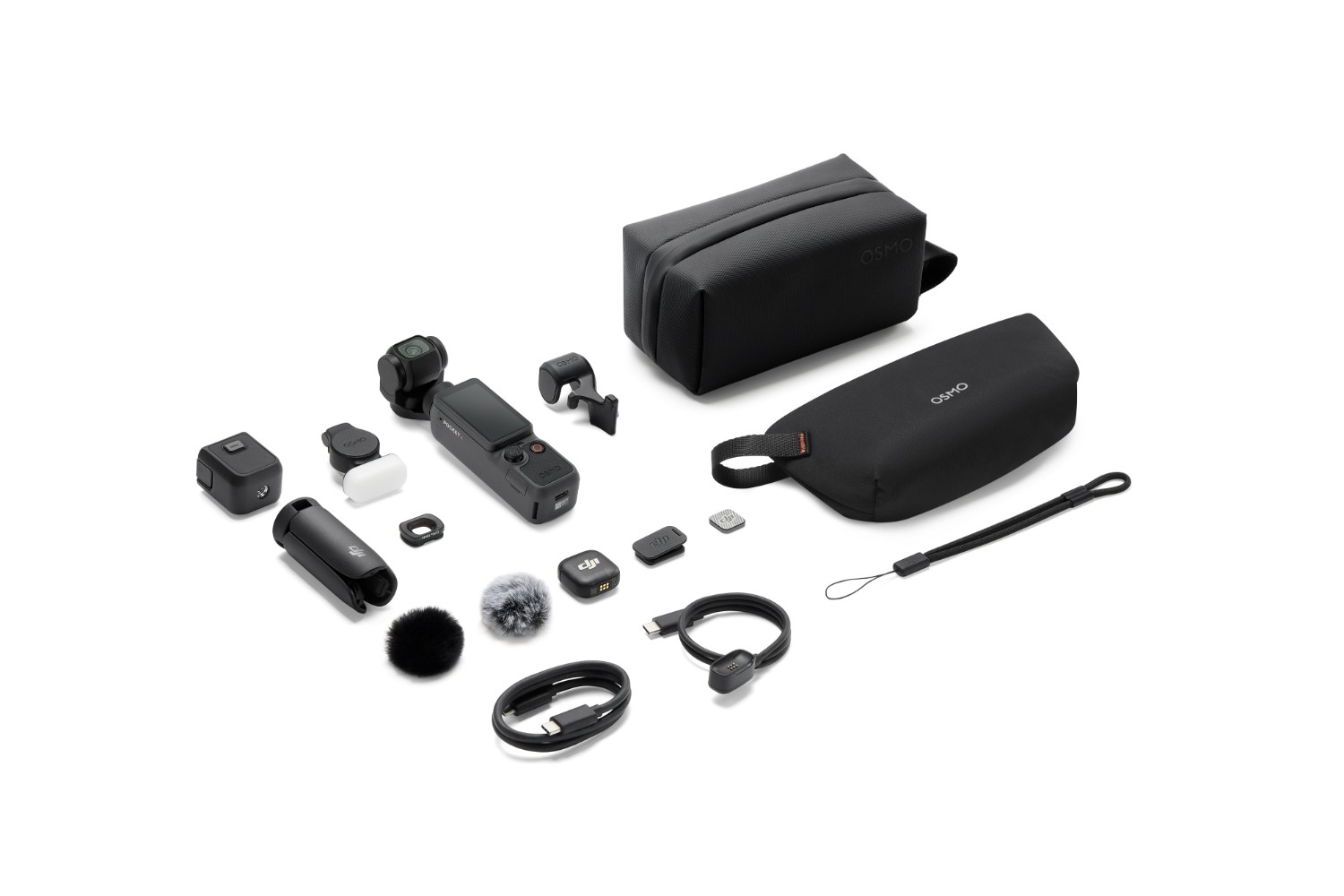 Kamera Osmo Pocket 4 je dodávána s celou řadou univerzálního příslušenství, které usnadňuje natáčení s vyváženým osvětlením, živými barvami a čistým zvukem.