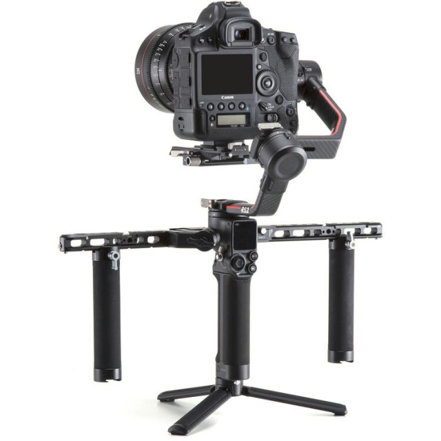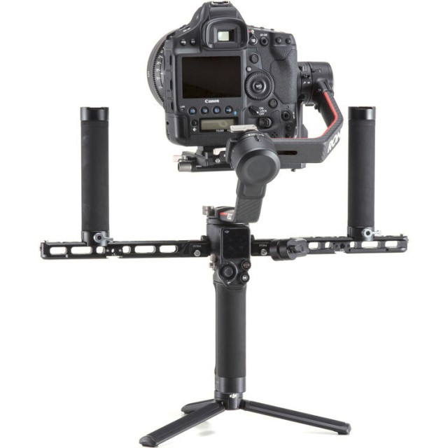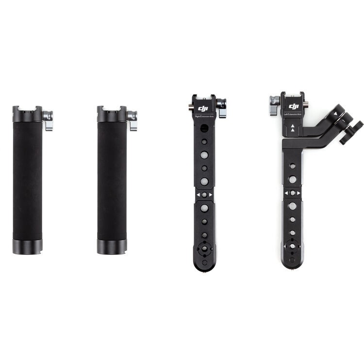 DJI R Twist Grip Dual Handle poskytuje ergonomické ovládání oběma rukama nebo podvěsné ovládání pro gimbaly řady RS. Je vybaven modulárními rameny a rukojeťmi, upevněním NATO a několika závitovými a studené patky pro příslušenství.