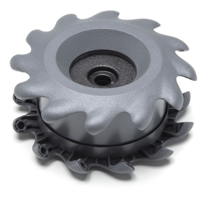 Každé kolo je vybaveno 12 válečky vyrobenými pomocí dvoustupňového vstřikovacího procesu, který kombinuje tvrdé a měkké gumové materiály. Tvrdé gumové válečky jsou vyrobeny z vysoce pevného, nárazuvzdorného, samomazného POM, zatímco měkké gumové válečky jsou vyrobeny z odolného TPU. Tato konstrukce z dvou materiálů zajišťuje optimální rovnováhu mezi odolností, trakcí a plynulým pohybem na různých površích.