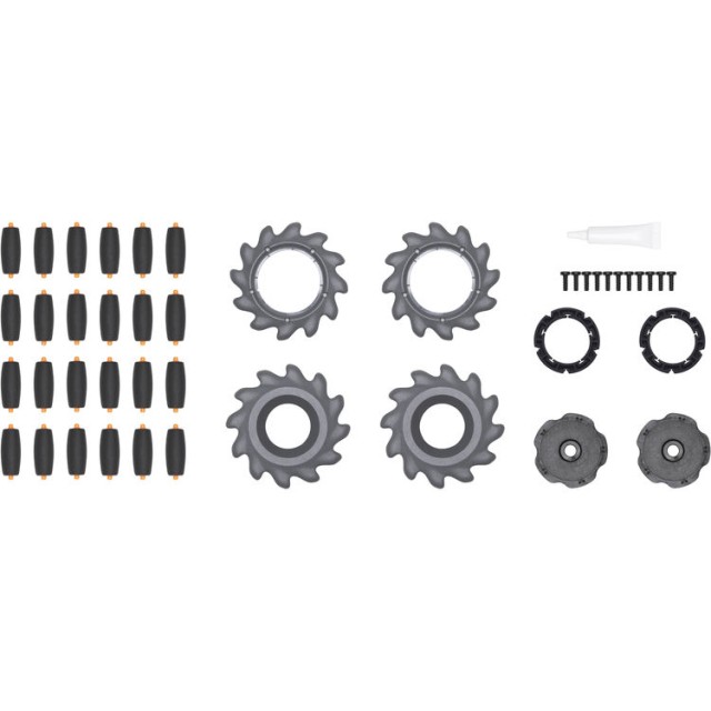 Sada kol Mecanum DJI RoboMaster S1 PART7 obsahuje vše, co potřebujete k sestavení nebo opravě dvou kol Mecanum pro váš tank RoboMaster S1. Tato kola jsou základní součástí jedinečného mobilního systému S1, který mu umožňuje pohybovat se dopředu, dozadu, do stran, diagonálně a plynule se otáčet na místě s výjimečnou přesností.