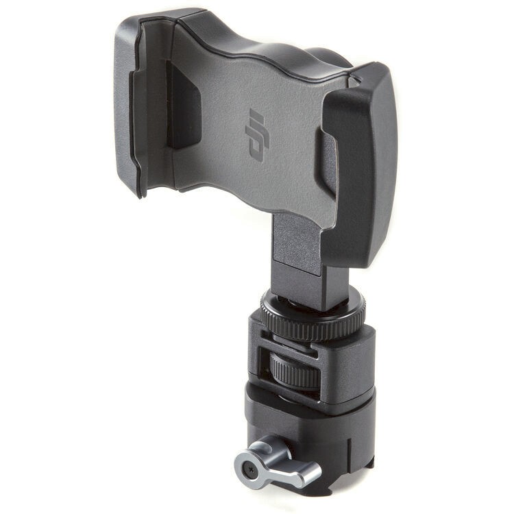 Držák telefonu DJI Ronin umožňuje bezpečně připevnit smartphone ke kompatibilním stabilizátorům DJI, což umožňuje sledování obrazu a funkce ActiveTrack/Force Mobile a zároveň poskytuje flexibilní možnosti upevnění.