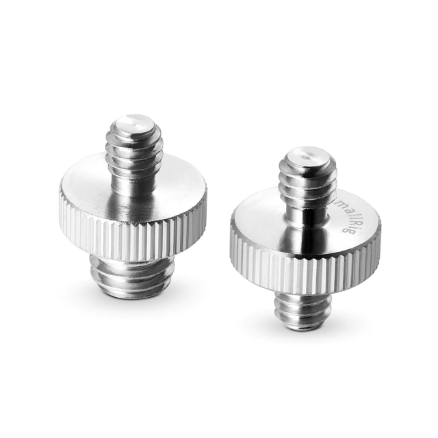 This is a combination of two double head screw: a 1/4"-20 to 1/4"-20 stainless steel (metal) screw, and a 1/4"-20 to 3/8"-16 stainless steel (metal) screw.