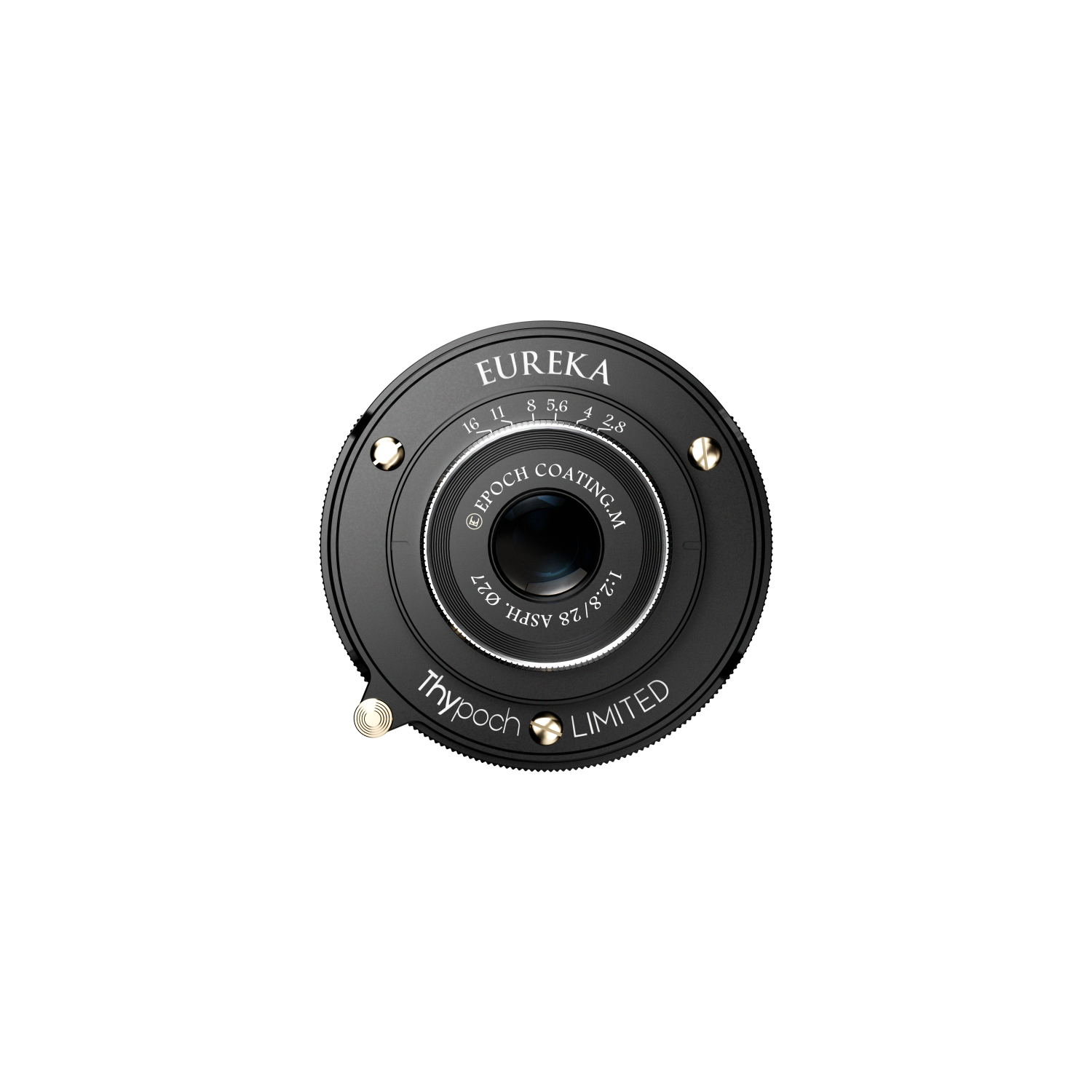 Objektiv Thypoch Eureka 28 mm f/2,8 ASPH. (bajonet Leica M) v pololesklé černé barvě kombinuje klasický vzhled plochých objektivů z 50. let s moderním optickým výkonem. Je kompaktní, lehký a vyrobený z mosazi. Součástí balení je černý adaptér M-to-X pro bezproblémové použití s fotoaparáty Fujifilm s bajonetem X.